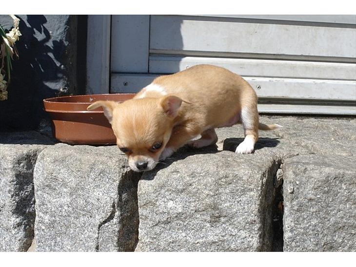 jelly er en dejlig lille hvalp.. jeg ved ikke hvad hun ender på i vægt men et skud i tågen ville være 2 kg..