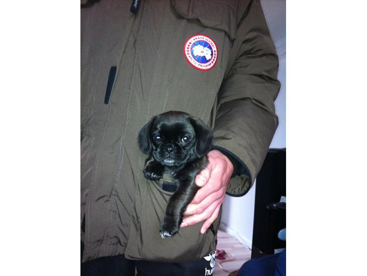 Bodil er knap ni uger pt (9/5/2011) så hun er ikke så gammel men hun har knyttet sig meget til både min kæreste og jeg allerede, hun er glad for andre mennesker og hunde og knore/gør aldrig med mindre det er en leg.