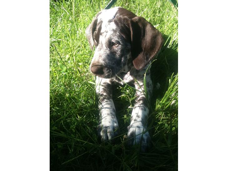 Moren er dalmatiner og faren er en tysk ruhåret hønsehund.