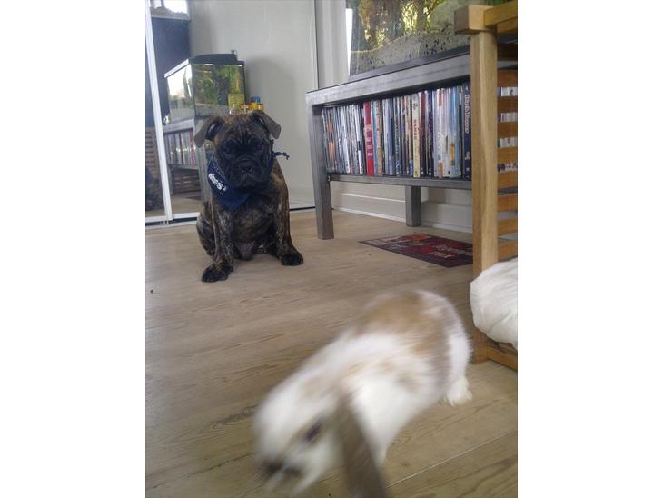 Ja! - Buster er stor og tyk og elsker skubbelege hvor han bare tonser igennem, Bella vores anden mindre hund elsker løbelege og gø lege.. Tror de ville lege rigtig godt!