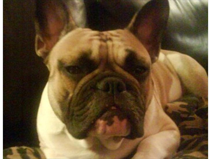 Kaizer er en pæn stor fransk, han er på størrelse med en old engels bulldog