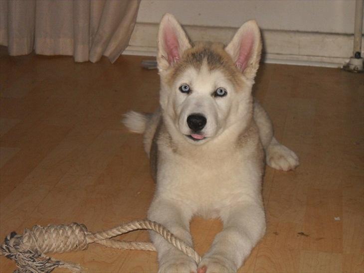 Novo kan logre med halen og gø meget højt som en labrador han har lært det af.