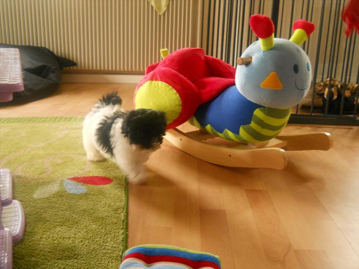 Han er en utrolig dejlig hvalp, er faldet rigtigt godt til , elsker mine dagpleje børn og alle som kommer i huset.