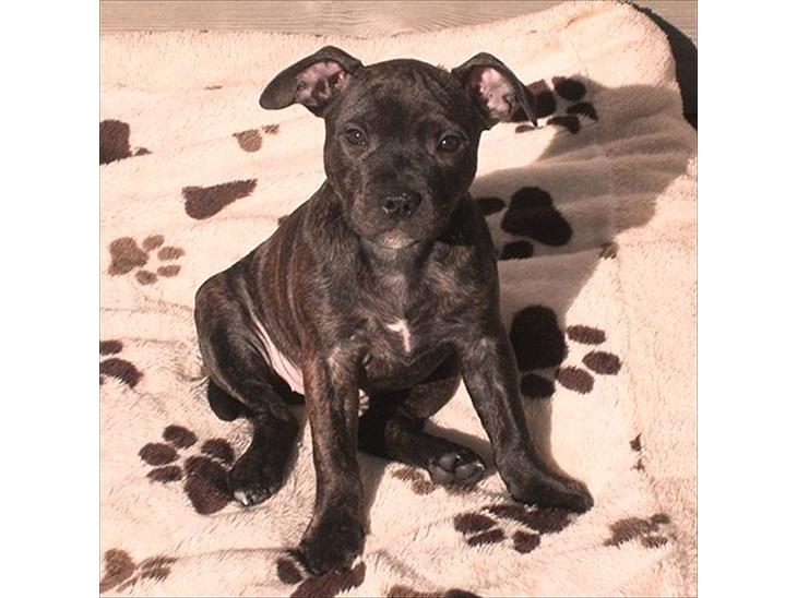 Jeg er den heldige ejer af denne skønne staffordshire bull terrier, hun har den dejligste personlighed og er virkelig en skøn og glad hund, hun har et hvidt 1-tal på brystet og det passer jo fint, for hun er min lille nr. 1 ;)