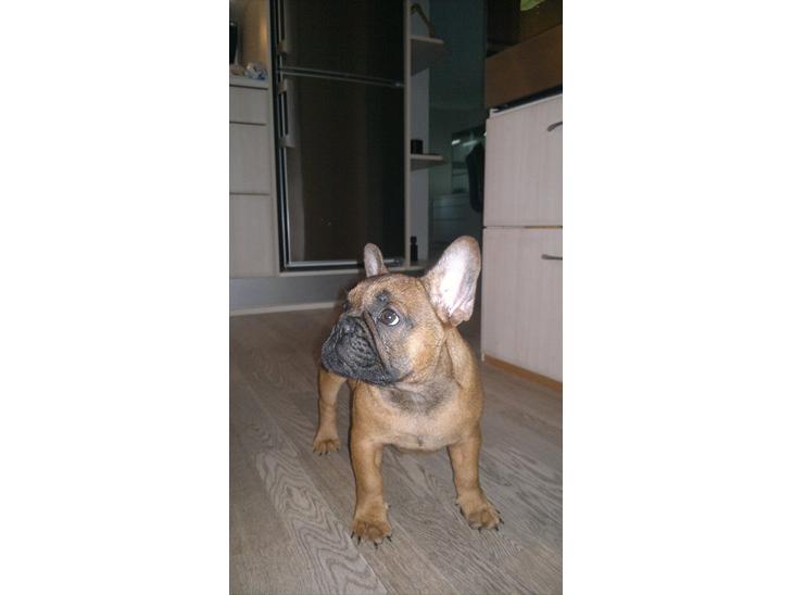 Bambus er en fawn fransk bulldog med sort maske. Han har en sort halespids.