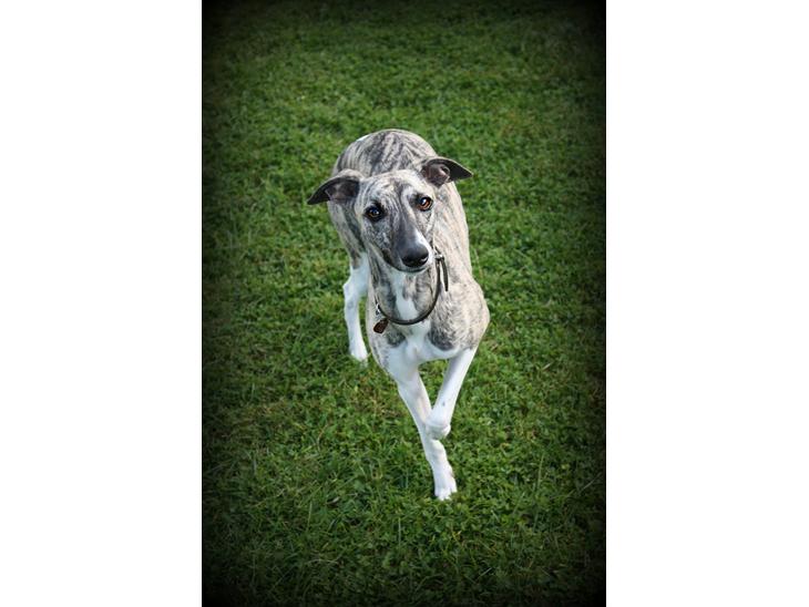 Quinta er min nye Whippet, en dejlig nusse pige. Hun er en hund der knytter sig meget til én person. Men opmærksom er hun også. Hun er tigerfarvet/brun og hvid. Håber på mange dejlige år med hende.