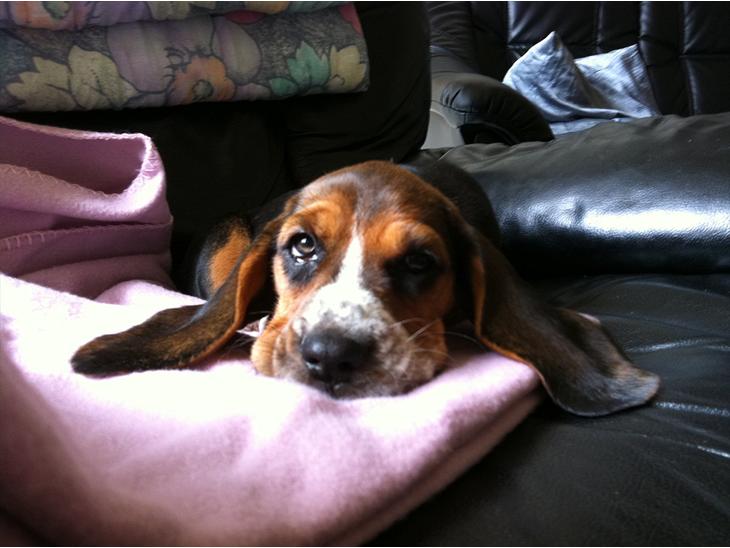 Berta en en fin lille Beagle/Basset hound blanding. Hun er endnu kun 6 måneder og vejer 11 kg.