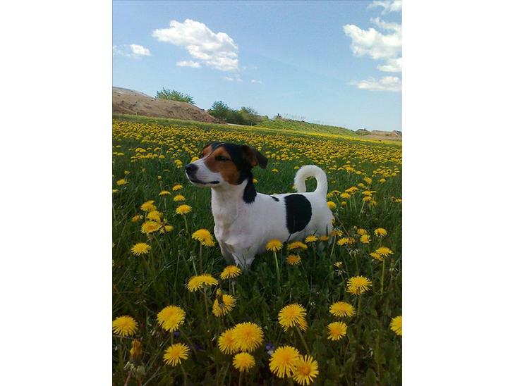 Tyson er den bedste hund man overhovedet kunne tænke sig. han følger os i tykt og tyndt og elsker at komme med ned til hestene hver dag.