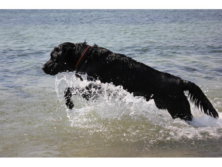 Basse elsker lange gå tur, især ned til vandet, han elsker at dykke rundt i vandt, en RIGTIGT vand hund!