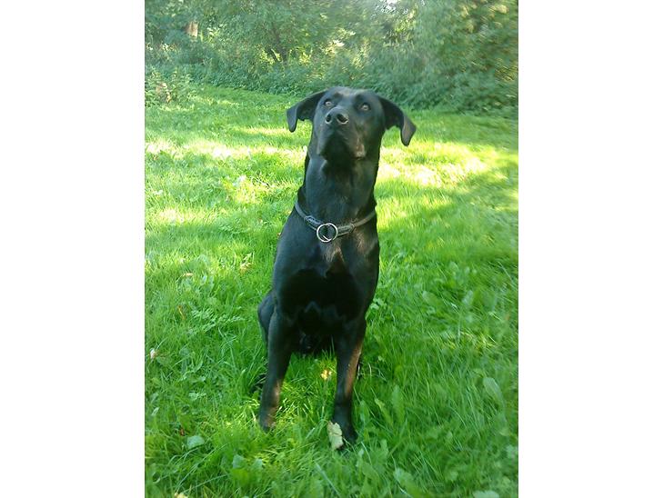 født den 26.sep.08 han er en stor hund vejer ca 30-35kg store poter, helt sort, har stadig sin mandighed :) han er en rolig hund glad for at lege/løbe rundt og nyder en go tur ud over en åben mark osv. han elsker børn, han omgås godt med andre hunde og katte der ikke er for nysgerige/ ellers leger han med kattene har aldrig set ham spise nogle katte og har haft ham fra han var 16uger :)