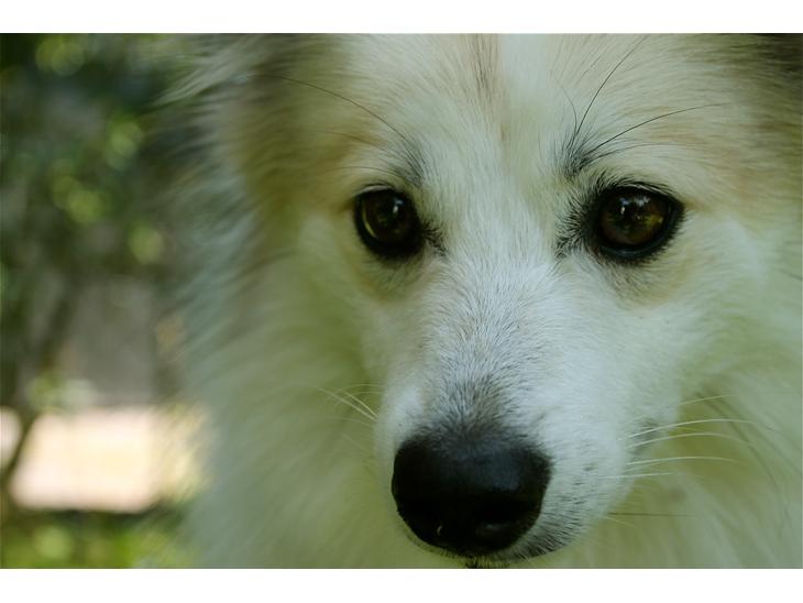 Nej da hun er en fantastisk god blanding af Islandsk fårehund og Japansk spids, det bliver tit kommenteret at hun er en utrolig smuk hund, hvilket hun i den grad også er.