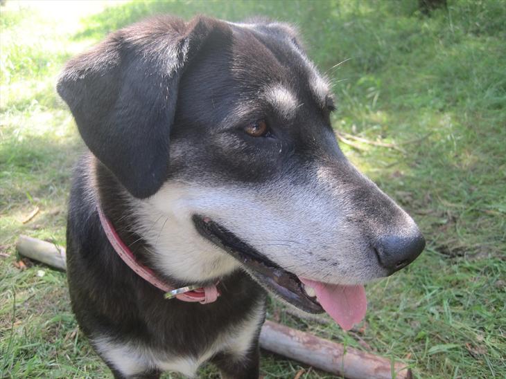Hun er meget blid af natur. Hun er også meget lærenem og venter altid på en, hvis man går lidt langsommere end hende. Det er hyrdehunden i hende :)