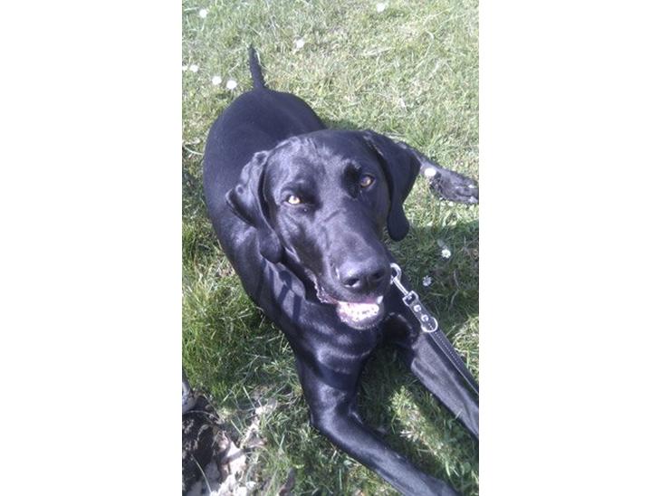 kulsort og hamrende flot bygning. Faren er Tysk korthåret hønsehund (Alto). Moren en blanding af Grosse Münster og Flatcoated (Zita)