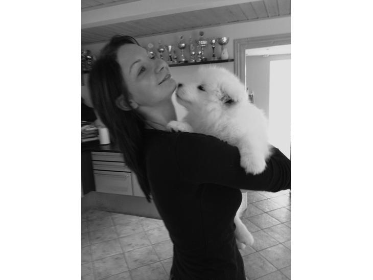 Noa er en dejlig Samojede baby på 9 uger. Hun er altid glad, imødekommende og fuld af energi! Noa har boet hos os i 8 dage og vi bliver mere og mere glade for hende for hver dag der går. Jeg glæder mig meget til at følge hendes opvækst og se hende blive en stor bamse en dag :-)