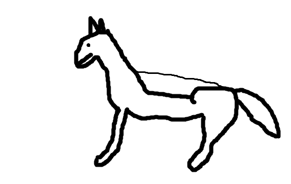 Jeg har aldrig sagt jeg kunne tegne. Det er ret svært at tegne "for tynd" fra siden, så jeg har ført linjen længere ned for at gøre det tydeligt, den øverste tynde linje er altså som jeg ville have tegnet en normal hund, nederste linje er så hendes.