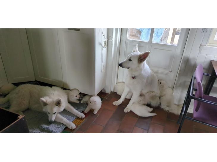 Hvid schæfertæve søger kærlig familie fra den 25/5.