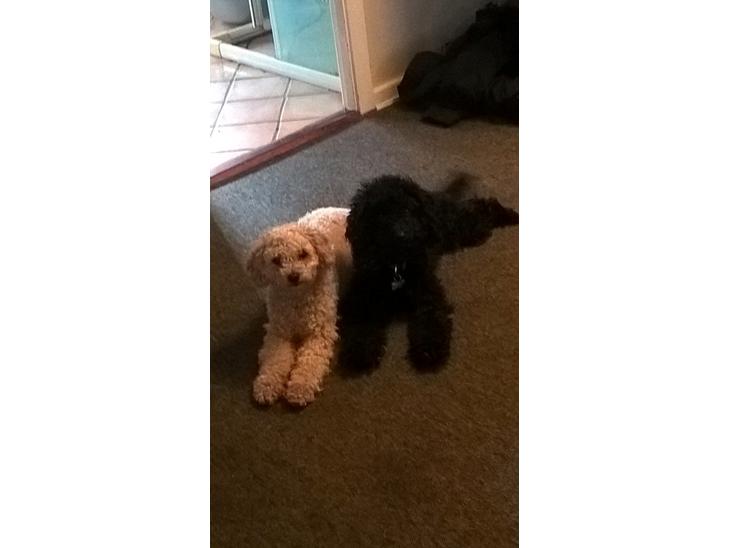 Den mørke abrikos er en han hund.samt 1 sorte han hunde