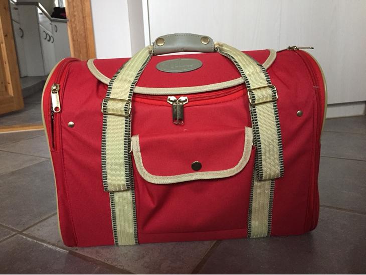 Sælger denne transporttaske til lille hund, da min egen er vokset ud af den. Tasken er brugt en enkelt gang og fremstår som ny. Alle lynlåse virker, ingen mærker, slidtage osv. Tasken har en praktisk lomme til hundepas, godbidder eller snor. Den ene ende kan åbnes helt og den anden halvt - således at hunden kan kigge ud. Hele toppen af tasken kan også åbnes, hvis man er til det. Stropperne kan spændes ind til håndtaske og ud til skuldertaske.