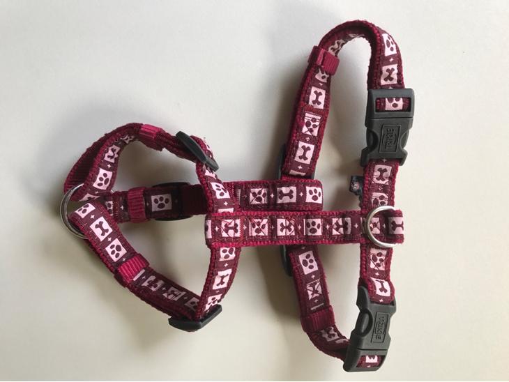 Fremstår næsten som nye. Kun brugt da min hund var i voksealderen. De kan spændes rigtig meget ind og ud. Den store passer til en Golden retriever.